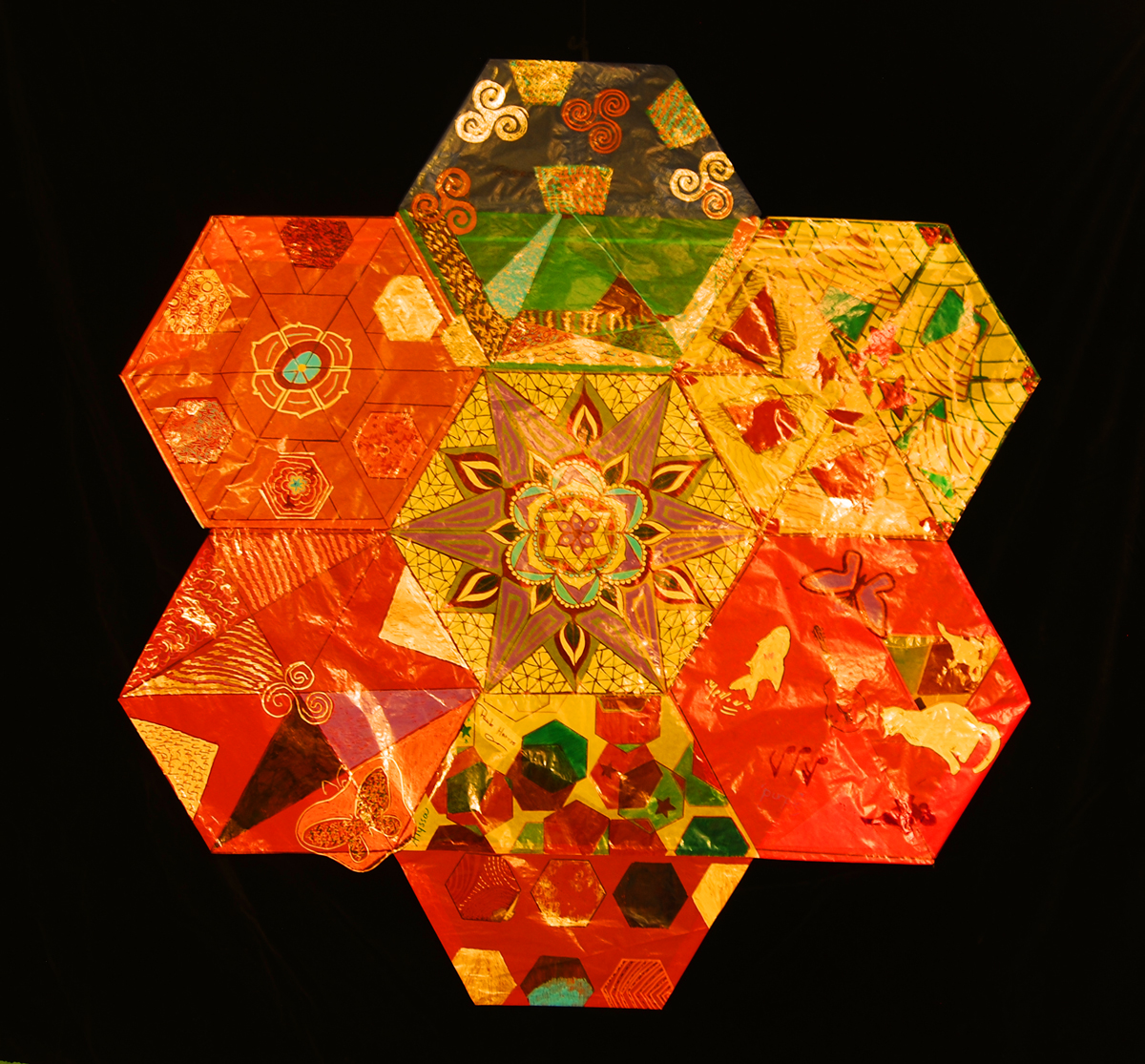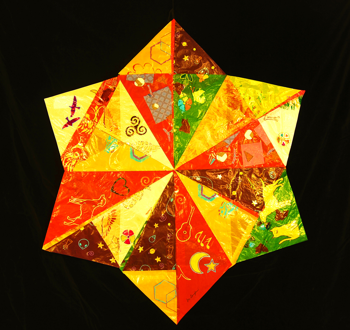 2016, kite paper with stencils, 60" x 60" in collaboration with residents or New Courtland Germantown Home.